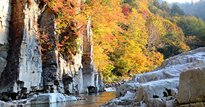 三ツ岩岳(東北百名山) 南会津町の小豆温泉西方にある三岩岳は、会津駒ヶ岳から会津朝日岳に連なる駒・朝日山群の一角を占め、ブナの原生林に覆われた奥深い山である。小豆温泉入口からすぐにブナ林に踏み入り、長い登高の果てに尾根に出れば、ハクサンコザクラが咲く湿原や、山名の由来となった3つの岩峰、眺望のよい山頂が待っている。 尾白山(会津百名山) 美しいブナの森林が広がる山、会津百名山。伊南地域のシンボルの山です。かつては山頂には郷社一ノ宮(現香取神社)がまつられたり、伊南郷の雨乞いが執り行われた神聖な山です。美しいブナの森林が観賞でき、タムシバ、シャクナゲなど季節によって素敵な花が咲いています。山頂からは北に大博多山、東にトンガリの唐倉山、南に三ツ岩岳など会津の山々が眺望できます。 大博多山(会津百名山) 大博多山は南会津町の伊南と南郷地区の境界に位置する標高1315mのブナに覆われた一等三角点の山で、会津百名山の一つに数えられている。地元青柳地区においては古くから信仰の山として知られ、かつて、水飢饉の際、大博多山に雨乞いを祈願した結果、雨が授かったという伝説がある。林道入口に祀られている神社では、毎年旧暦の2月1日に山に感謝を捧げる神事が行われている。登山道が整備され、ヤブこぎするようなところはなくなったが、まだ大博多山に訪れる登山者は少ないため、豊かな自然を存分に楽しむことができる南会津の寂峰である。大博多山は秋の紅葉時期に山開きが行われる山としても知られている。因みに2013年は10月20日に実施(詳細)される予定。登山シーズンも終盤に近い紅葉時期の山開きも考え深いものがある。 ラフティング(川遊び) 清流伊南川でラフティングを体験することができますので、「観光物産協会伊南支部」にお問い合わせください。 鮎釣り 須賀屋でおとり鮎と遊漁券を販売してます。ただし、友釣りに限ります。リ―ル使用禁止。釣券を携帯・掲示して入川してください。 会津高原スキー場 南会津には「高畑スキー場」、「南郷スキー場」、「だいくらスキー場」、「たかつえスキー場」の4つのスキー場がございます。 屏風岩 伊南川の急流が長い年月をかけて形づくった奇岩・怪岩が天をつくようにそそり立ち、むきだしの白い岩肌は紅葉の季節にはさらに映え、迫力いっぱいです。遊歩道も整備されて いるので散策コースとしても楽しめます。 古町の大いちょう 古町の大イチョウは建久年間会津四家の1人、初代河原田盛光が東舘、西舘を築いてここに重臣を住まわせ、その時に植えた庭樹と言い伝えられています。11代盛次の時馬場安房が居住したので後人、馬場屋敷と呼ばれている。(現在は伊南小学校々地となっている。)昔は乳の神として村人の信仰厚く、また遠くに上州や越後からの参詣者も多かったという。樹令800年余と推定、樹高35m、根廻り16m、目通り11mで、県指定天然記念物に指定。 久川城跡 福島県史跡に指定されており、春には桜が楽しめます。久川城跡は、青柳と小塩にわたる南北約565m、東西約250m、比高53mの丘陵に所在します。東は伊南川に臨み、西は絶壁をなして、その下は滝倉沢の渓流となり、北はこれと合流した久川がふもとを流れる天然の要害です。『新編会津風土記』巻44の青柳村の項からは、久川城の風格が伺え、同書等より古町の館に住した河原田盛次が天正17年伊達政宗軍の来襲に備えて築城したもので、のちに蒲生氏の支城となりましたが、慶長16年に至り廃城となりました。現在でも遺構の保存の良好な点、歴史的背景及び築城廃城の時期が比較的明確な点など、国近世初頭の山城として極めて貴重な史跡と認められています。 大桃の舞台(国指定有形民俗文化財) 南会津の歌舞伎舞台といえば檜枝岐の舞台が有名ですが、檜枝岐村にほど近いこの南会津町大桃地区をはじめ、南会津には地区ごとの農民歌舞伎の一座があり、おなじように舞台も数多くありました。そのなかで現在も残っているのがこの大桃の舞台です。国の重要有形民俗文化財に指定されています。